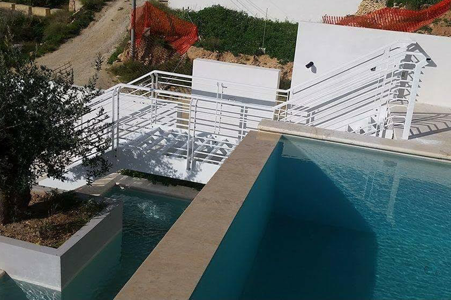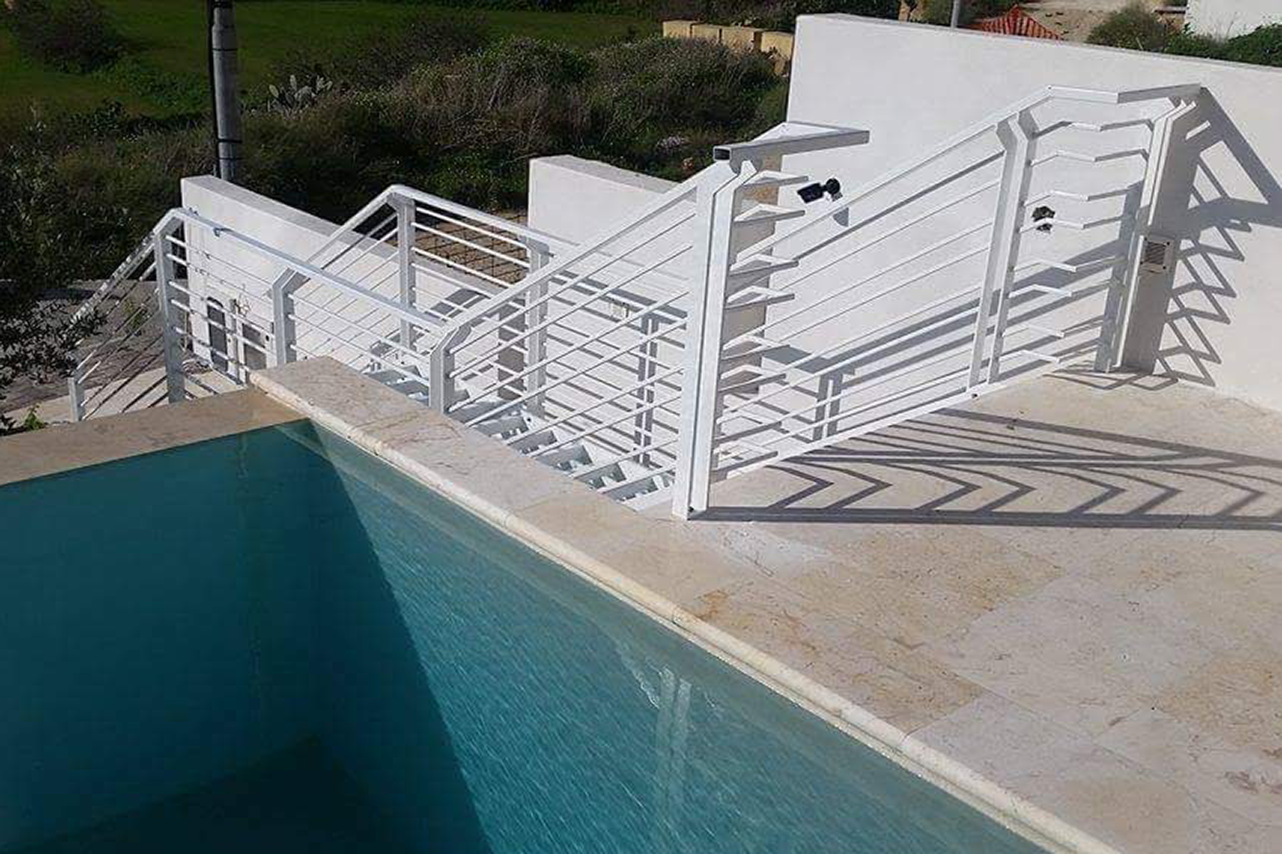 DescriptionGalvanized structure & stairs white powder coated with marble steps